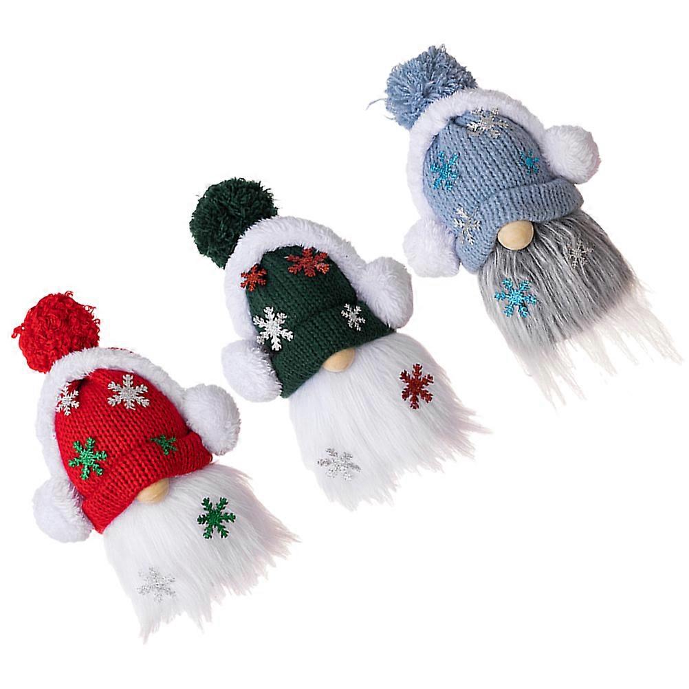 Xmas Gnome Doll Knitted Hat Decoration for Decor Set of 3 Plush Ornaments