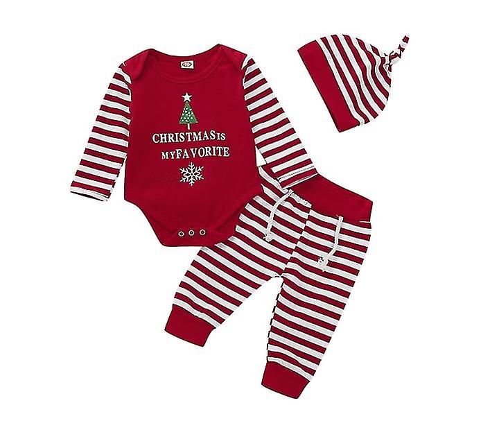 Christmas Newborn Infant Baby boy Girl Clothes Outfit Long Sleeve Romper Pajama+Striped Headband Set