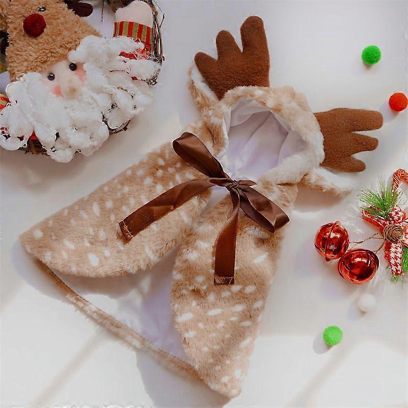Christmas Pet Costume Reindeer Cape Cloak Warm Dog Cat Clothing Outfit With Hat Accessories