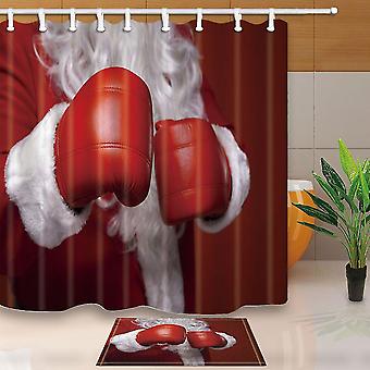 Christmas Santa Claus Wears Boxing Gloves Shower Curtain 160x180 Cm With Floor Doormat Bath @bugu
