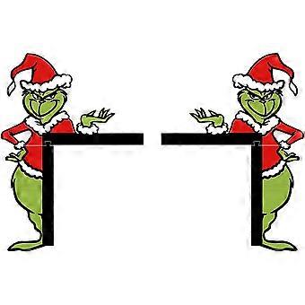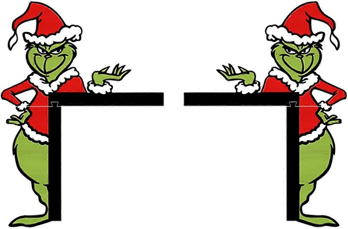 Christmas Grinch Decoration Wooden Angle Door Corner Sign Door Corner Decor (#2 - Left + Right)