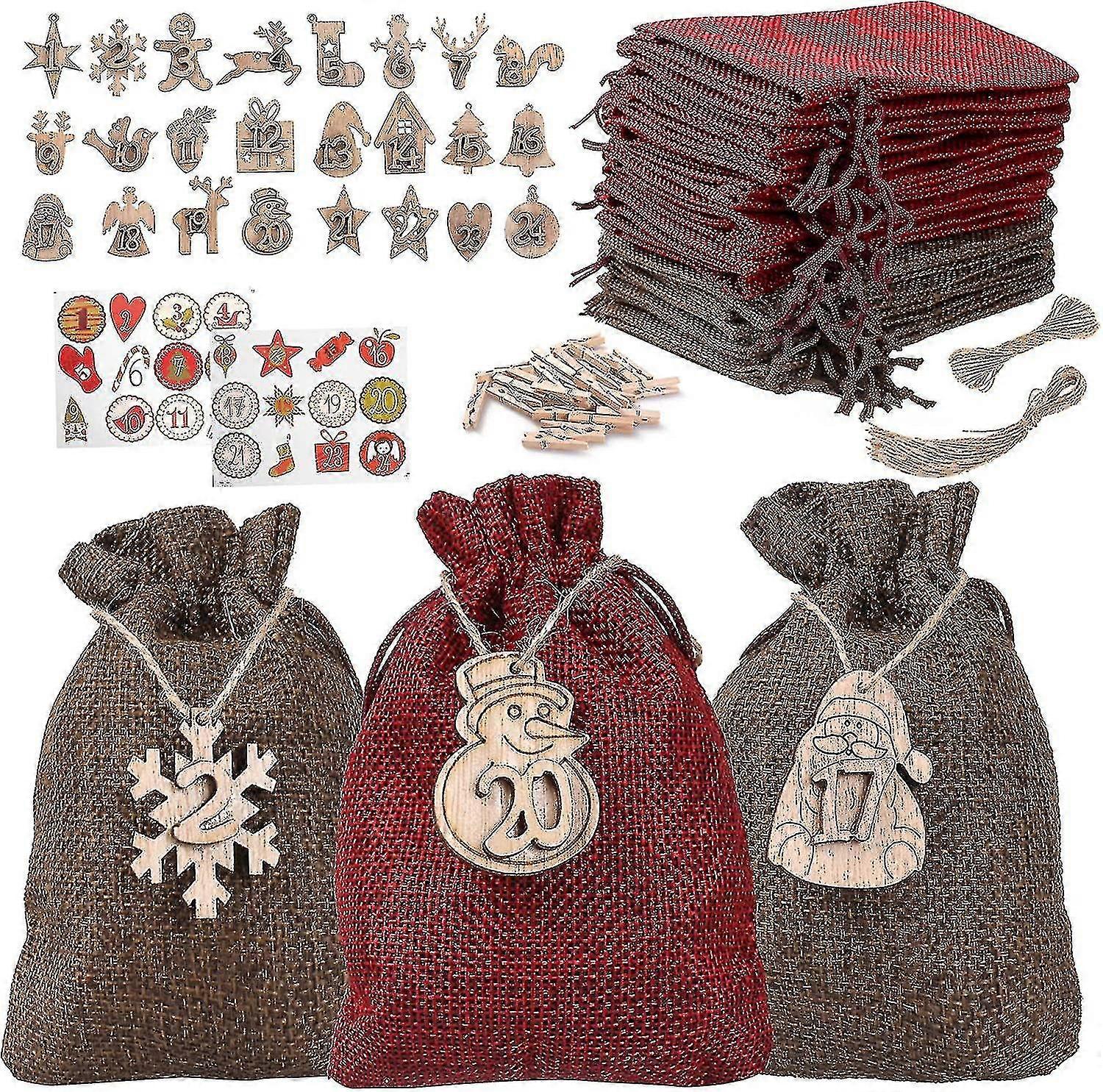 Christmas Advent Calendar, 24pcs Advent Calendar Bags For Filling, Xmas Countdown Cal