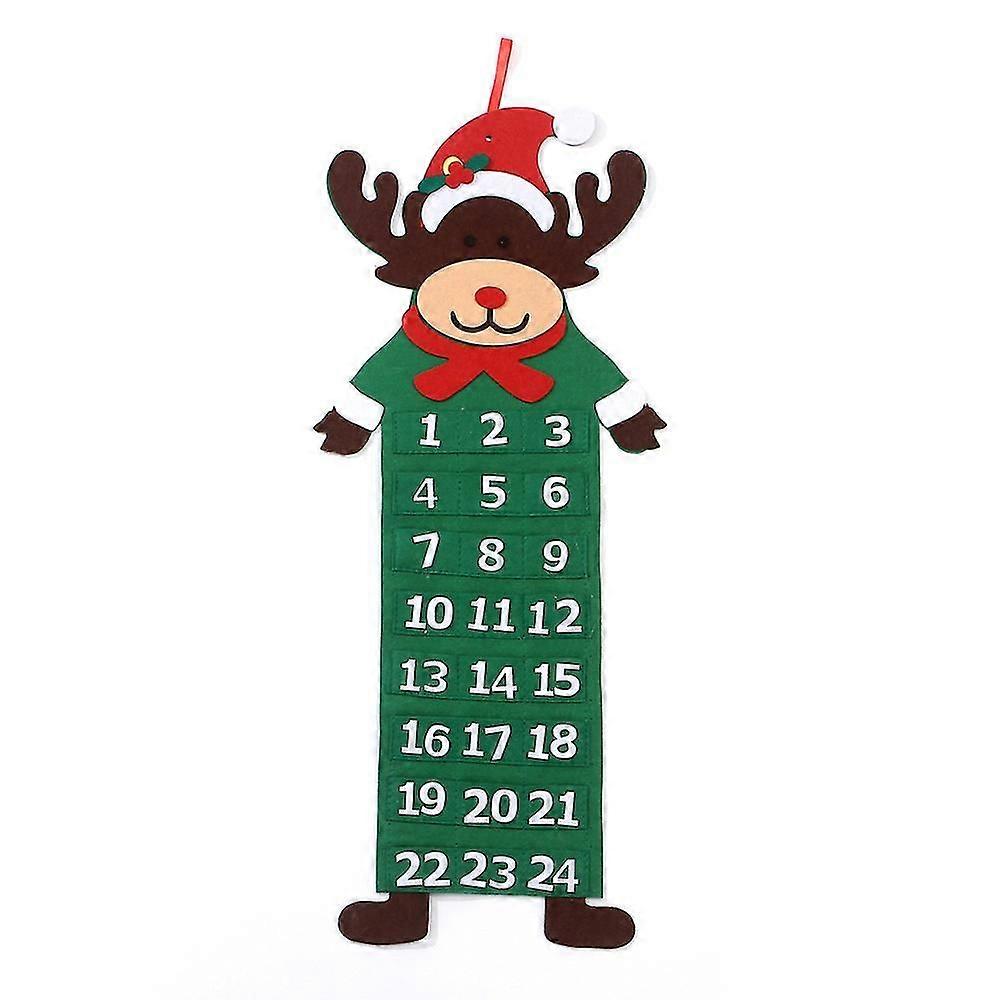 NIUNIU Christmas Advent Calendar 24 Pockets Santa Elk Snowman Ornament Features: FABRIC STITCHING: Each pocket is made of stitched fabric and each number is stitched with decorative embellishments for helping recognize each date. A small hole at the top of the calendar is for hanging. PUT YOUR OWN GIFT IN EACH POCKET: Each pocket can hold a variety of possible gift choices. Perfect for putting treats / sweets and small toys in each pocket. BRING FESTIVE CHEER HOME: Christmas just wouldn't be Christmas without the excitement of counting the days down as a family. Hang this calendar up in the living room to let the whole family enjoy it together. Colour: green Size: 21*79cm Quantity: 1pc 1.As different measuring methods,it will occur 1-3 cm deviation about the items,please ensure that cm it is okay for you before ordering. 2. Because of different monitors and lamplight, the picture may not reflect the actual color of the item, really thank you for your kind understanding 3. Only the above package contents, excluding other products