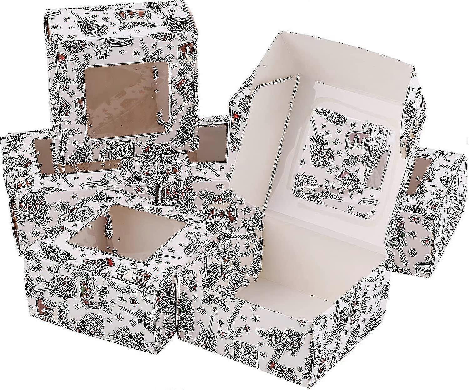 Xmas Mini Cake Boxes,3in Christmas Cookie Boxes Bakery Boxes,white Cake Boxes With Clear Window,xmas Bakery Treat Boxes Chocolate Candy Cupcake Box Pa