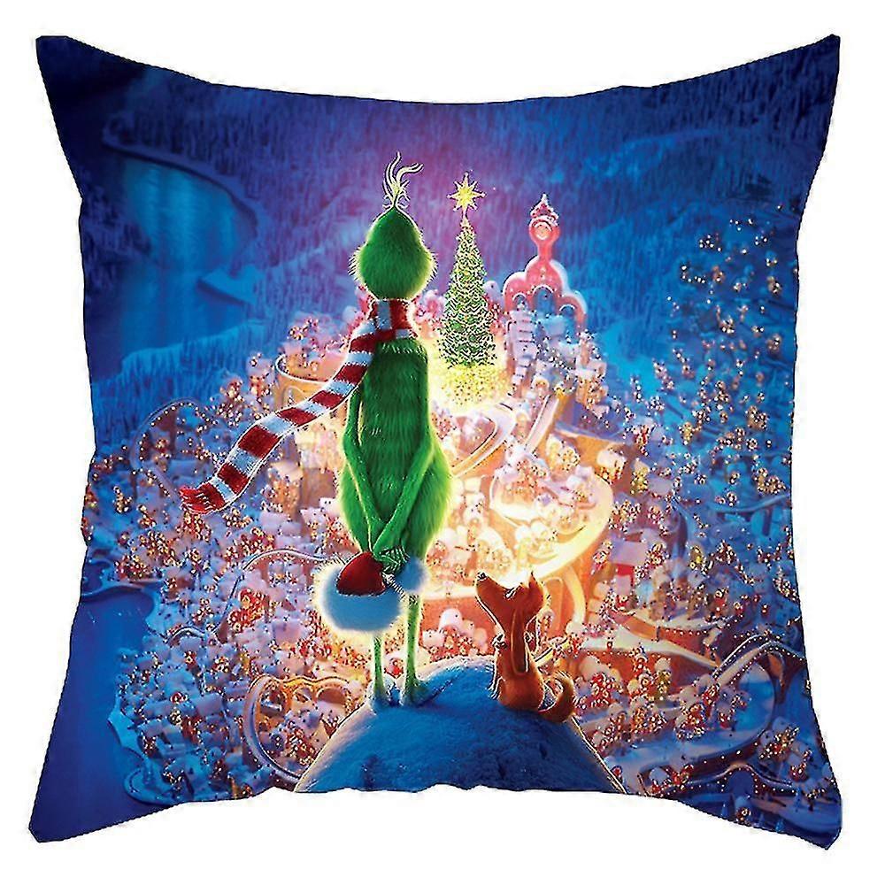 Christmas The Grinch Cushion Cover Green Monster Throw Pillow Case Xmas Sofa Decoration
