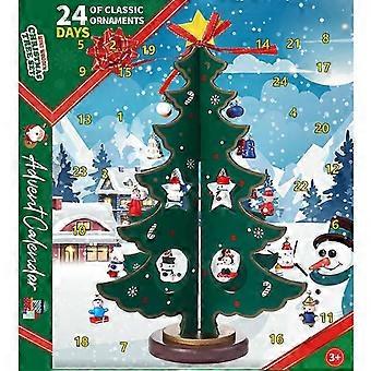Christmas 24-Day Countdown Advent Calendar with Tabletop Wooden Christmas Tree and 28 Ornaments Snowman Santa Decoration