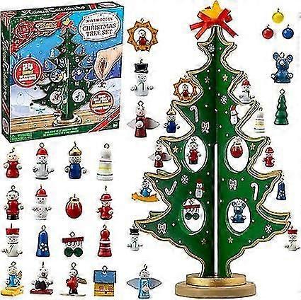 Christmas 24 Days Countdown Advent Calendar With A Tabletop Wooden Christmas Tree And 28 Ornaments Snowman Santa Decorations For Boys, Girls And Kids