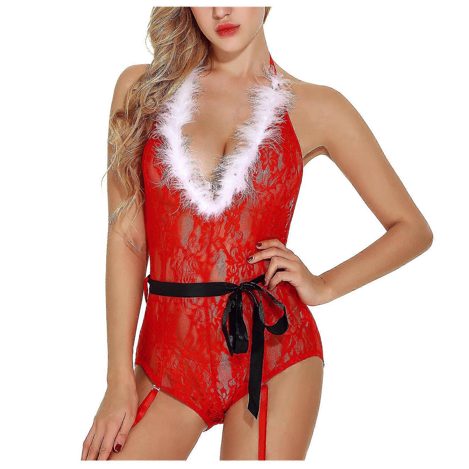 Christmas Cosplay Uniform Temptation Role Play Fun Suit Lace Jumpsuit