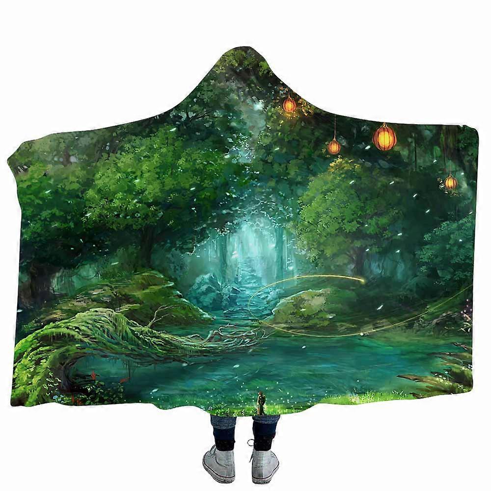 Forest Mushroom Hooded Blanket Coral Fleece Printed Psychedelic Hoodie Blankets For Kids Adults Sofa Tv Throw Blanket