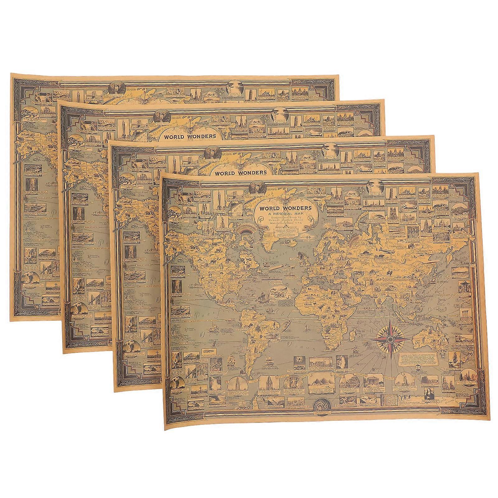 Living Room Decoration World Wonders Poster Holiday Decor Rectangular Retro Style 4Pcs
