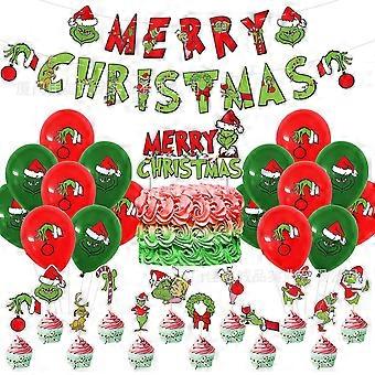 غرينش غرينش حزب عيد الميلاد مجموعة الديكور الشعر الأخضر الوحش عيد الميلاد الوحش جيلا العلم التوصيل الصف التوصيل العلم بالون