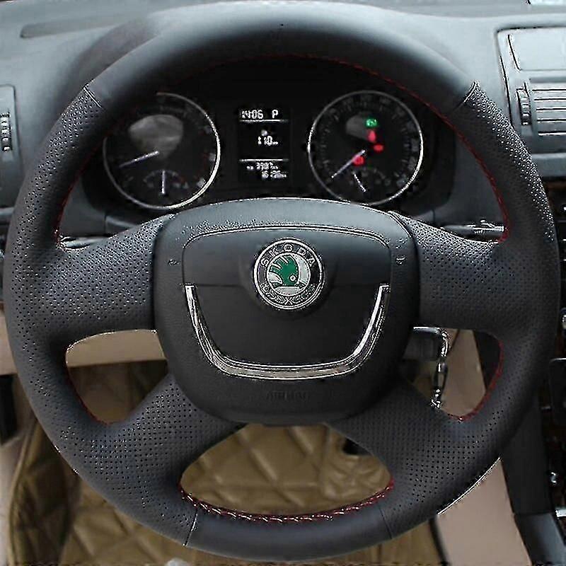 Hand-Stitched Black Artificial Leather Steering Wheel Cover for Skoda Octavia Citigo Roomster Fabia 2009-2013 2011-2012