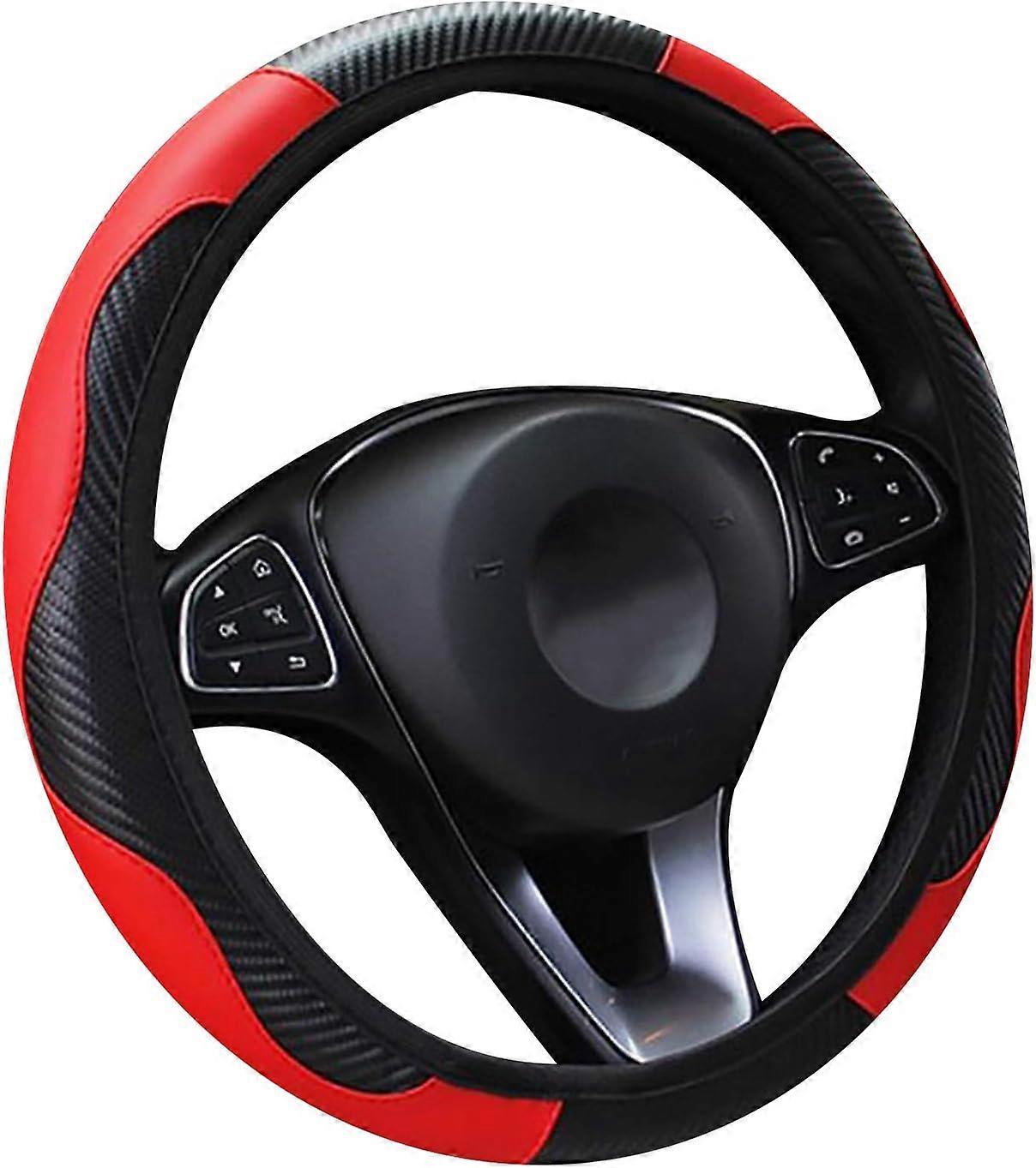 Leather Non-slip Breathable Car Steering Wheel Cover, Elastic Band Without Inner Ring, Universal Size 37-39cm/14.5-15 Inch (Red)