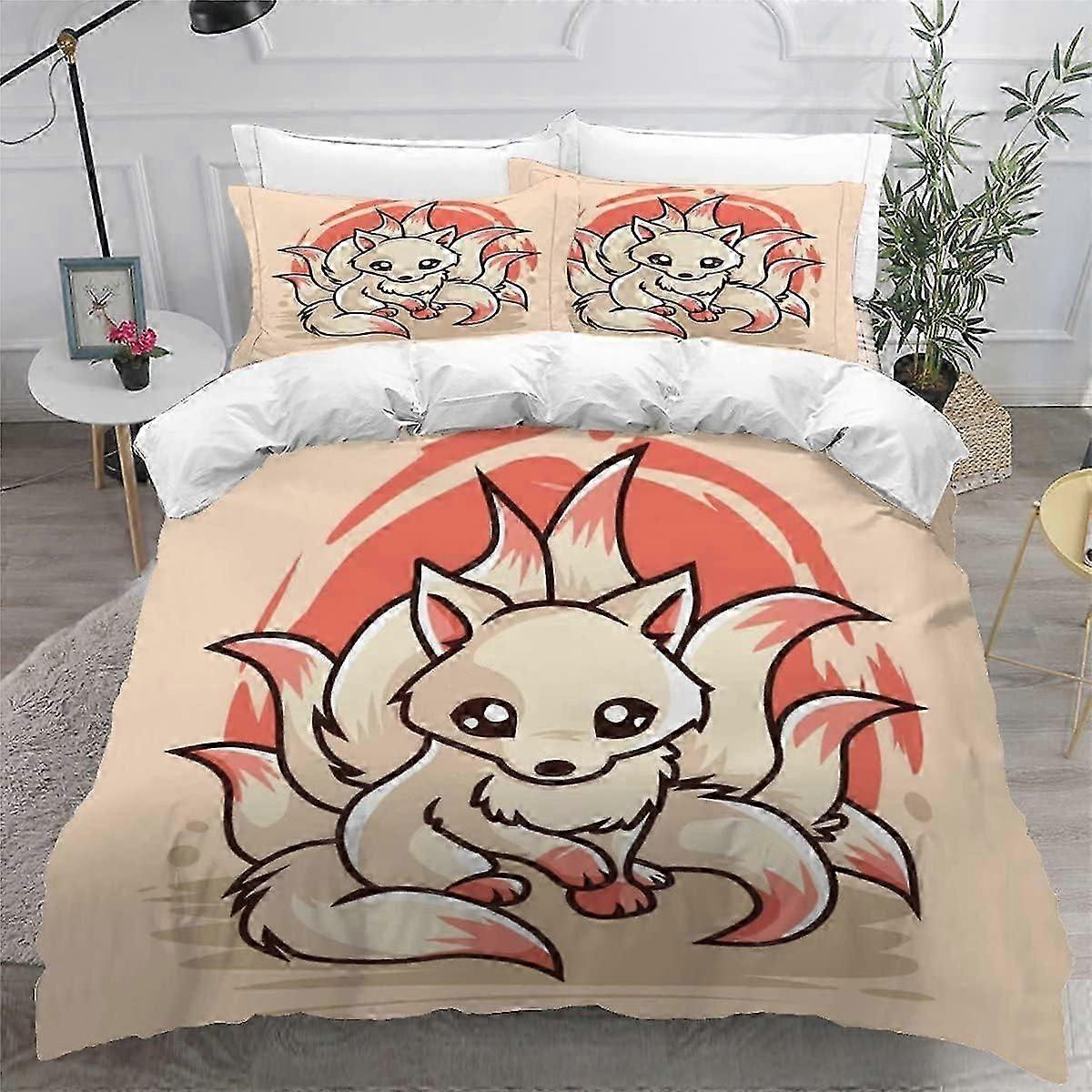 Children's Duvet Cover 3D Fox Print Girl Bedding Set for 2 People A Nine-Tailed Fox 3 Pieces Comfortable Soft Microfiber with Zipper Bedding and 2 Pil