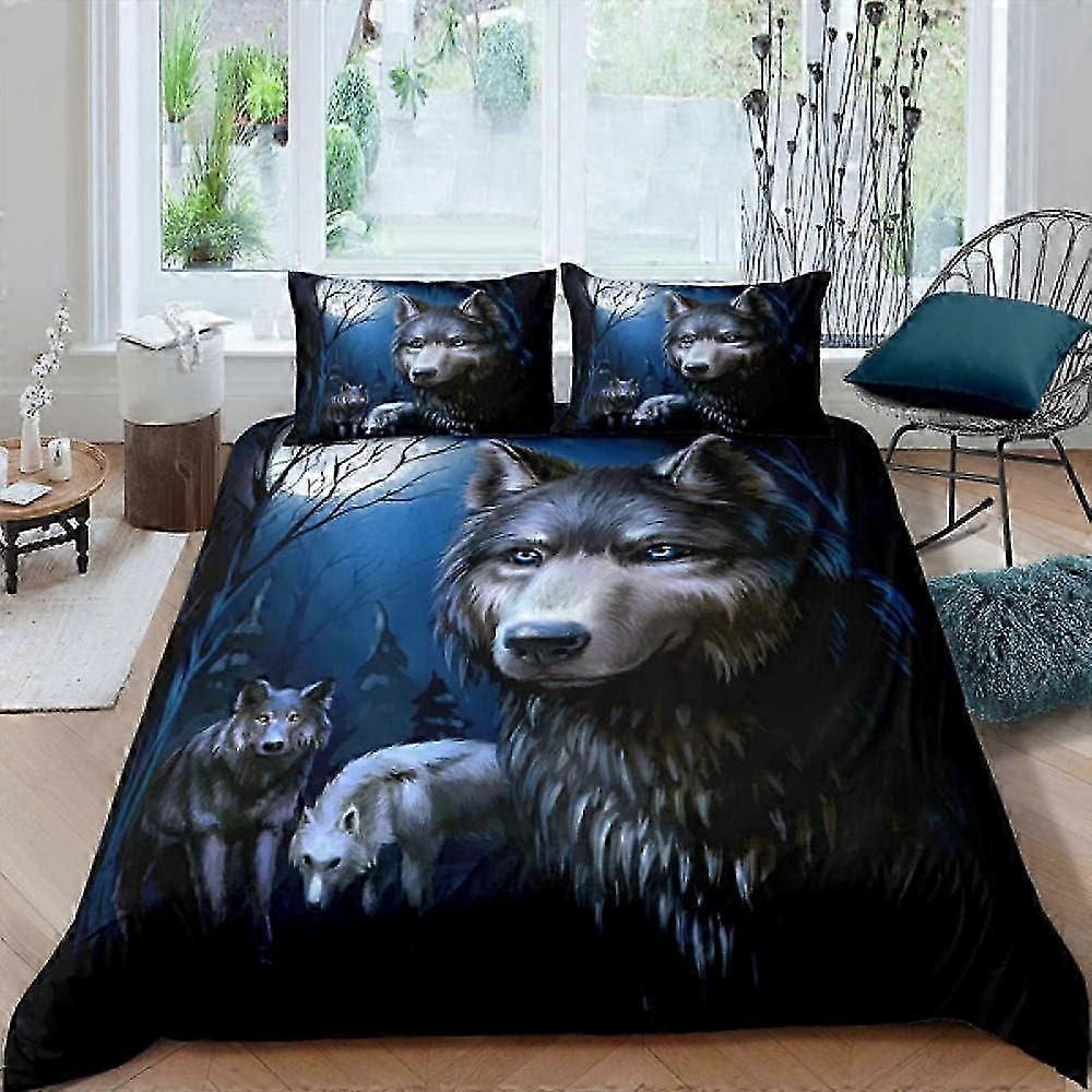 Duvet Cover 1 Person 90x190 Blue Wolf Bedding Set with Zipper for Adults and Teenagers, Soft Microfiber Bedding Cs