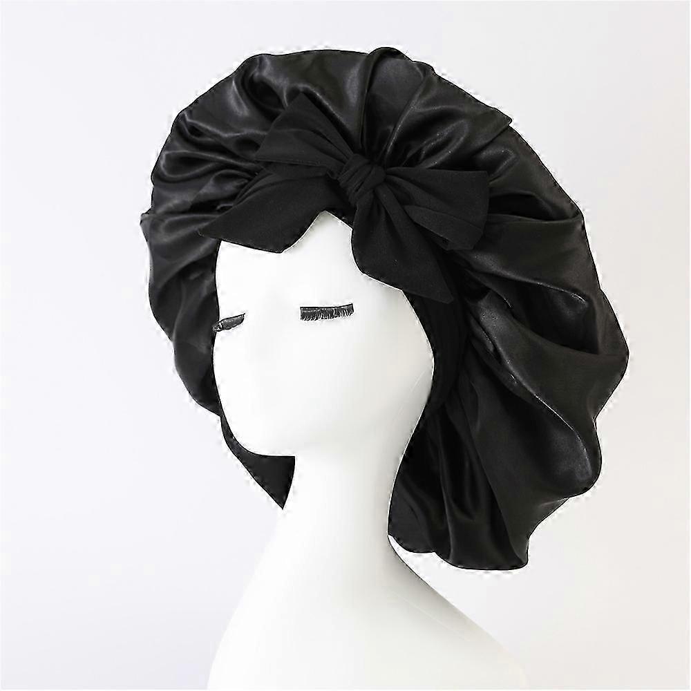 Satin Bonnet Silk Bonnet for Women,Hair Bonnet for Sleeping,Jumbo Bonnet Satin Silk Bonnet,Adjustable Tie Bonnet(Black)