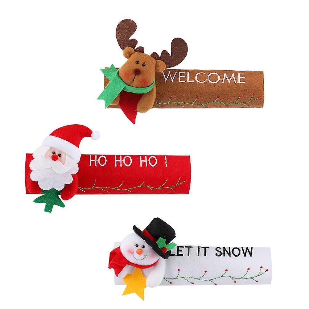 Kitchen Use Refrigerator Handle Cover 3Pcs Christmas Decoration Fingerprint-resistant Protector Practical Design