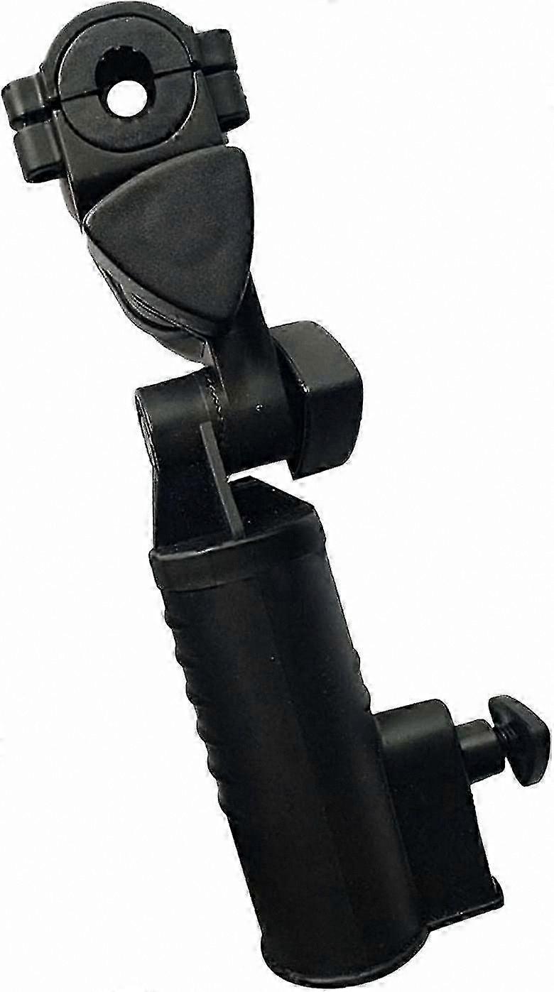 This umbrella stand is made of high-grade plastic, providing durability and stability. Its lightweight and portable design allows for easy installation and transport. The stand is sturdy and securely holds your umbrella to protect you from sun or rain. It features an adjustable internal width to accommodate various umbrella handle sizes, fitting most golf umbrellas. The adjustable angle allows movement forward, backward, left, or right. A built-in screw fixing device is integrated into the handlebar frame for secure attachment. Recommended for use with 3-wheel or 4-wheel golf carts, baby strollers, wheelchairs, bicycles, fishing chairs, and beach chairs. Compatible with both round and oval mounting surfaces. Color: Black Size: 31.5 x 7.5 cm Product includes: 1 x golf umbrella stand