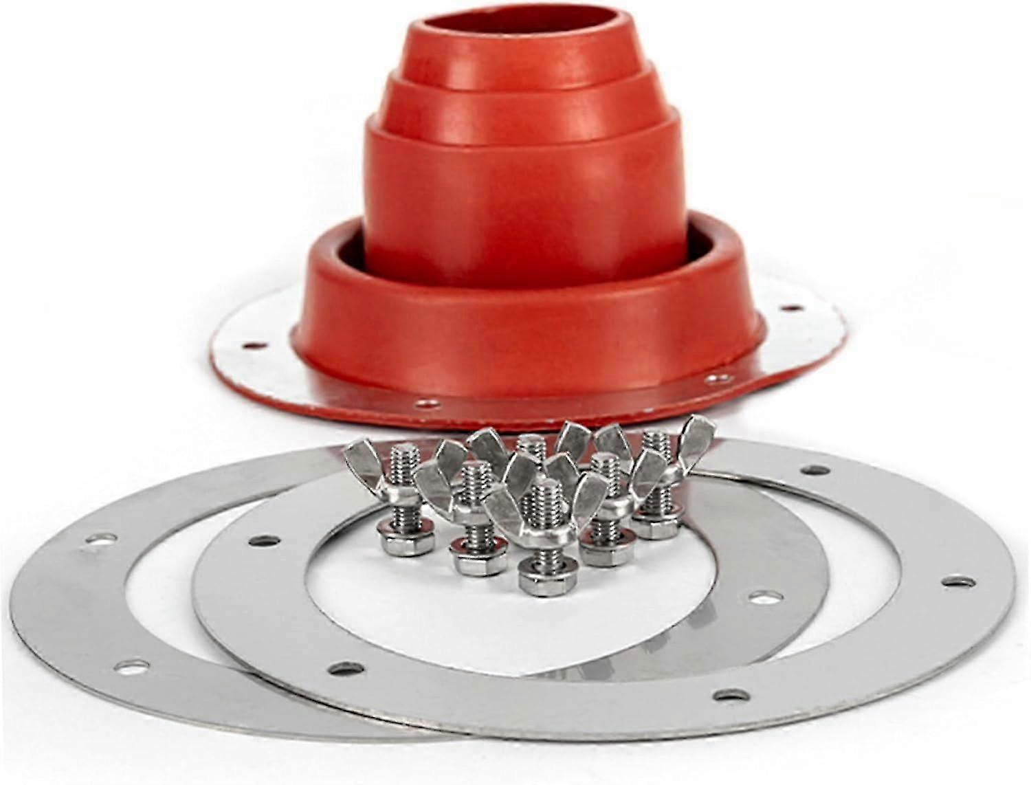 Easy to Install: Screw fittings are included for easy installation and can be easily fixed to the tent. Tent stove pipe flashing installation is very simple.First customize the right size with scissors,cut the corresponding chimney pipe, and then unscrew the screws and nuts on the base to fix it at the place where it needs to be installed for simple installation and disassembly. Safety Feature: Tent flashing kit prevents hot chimney pipes from coming into direct contact with your tent or other flammable materials, preventing the heat from igniting the tent and causing a fire. It helps you to convert your tent for use with a wood stove. Product Dimension: Fits Pipes with outside pipe diameter: 4.5-10 cm/1.77-3.94 inch.(45~10mm, over 4.5 cm, you will need to cut your own rubber ring). The base outer diameter: 16 cm/6.30 inch, inner diameter: 11.5 cm/4.53 inch. Please confirm the size of the chimney pipe base before purchasing. Wide Applications: The practicalTent Chimney Silicone Cover kit can be used for outdoor camping tents and is waterproof, windproof and UV-protected, making it ideal for outdoor use and less susceptible to bad weather. It can also be used in greenhouses, log cabins, sheds, boats and garages wherever a flue vent is required. 280 High Temperature Resistant: The main body of the Tent Chimney Silicone Cover kit is made of quality silicone, a silicone material that can withstand temperatures of up to 280 degrees. It is resistant to wear and tear, high temperatures and is not easily damaged or deformed, keeping your tent safe. -Material: Silicone. -Size: base outer diameter: 16 cm/6.30 inch, inner diameter: 11.5 cm/4.53 inch. -Fits Pipes with outside pipe diameter: 4.5-10 cm/1.77-3.94 inch.(45~10mm, over 4.5 cm, you will need to cut your own rubber ring).-Heat resistant: 280 degrees. Package Including:1 * Tent Chimney Silicone Cover