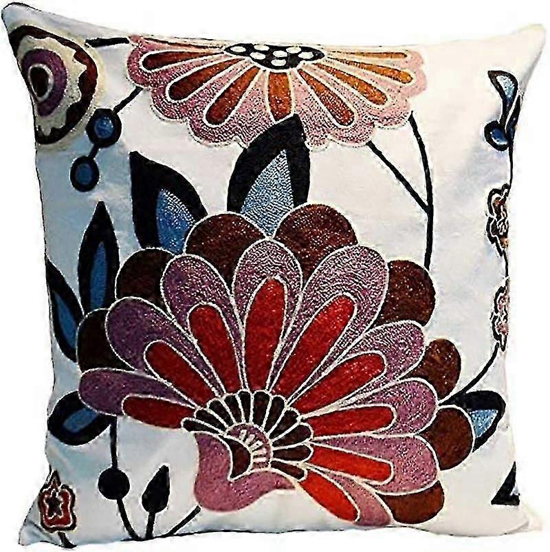 Cushion Cover 45x45cm Hand Made National Embroidery Pillowcase Decoration (flowers,purple) bd