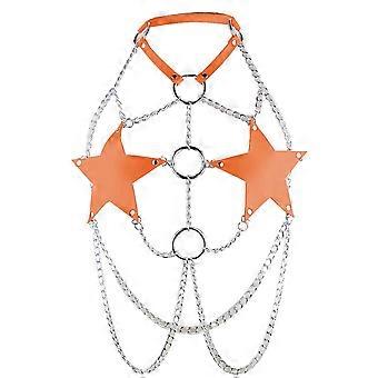 Punk Style Sexy Women Pentagram Bundle Chain PU Leather Strap Body Chest Jewelry(Orange)
