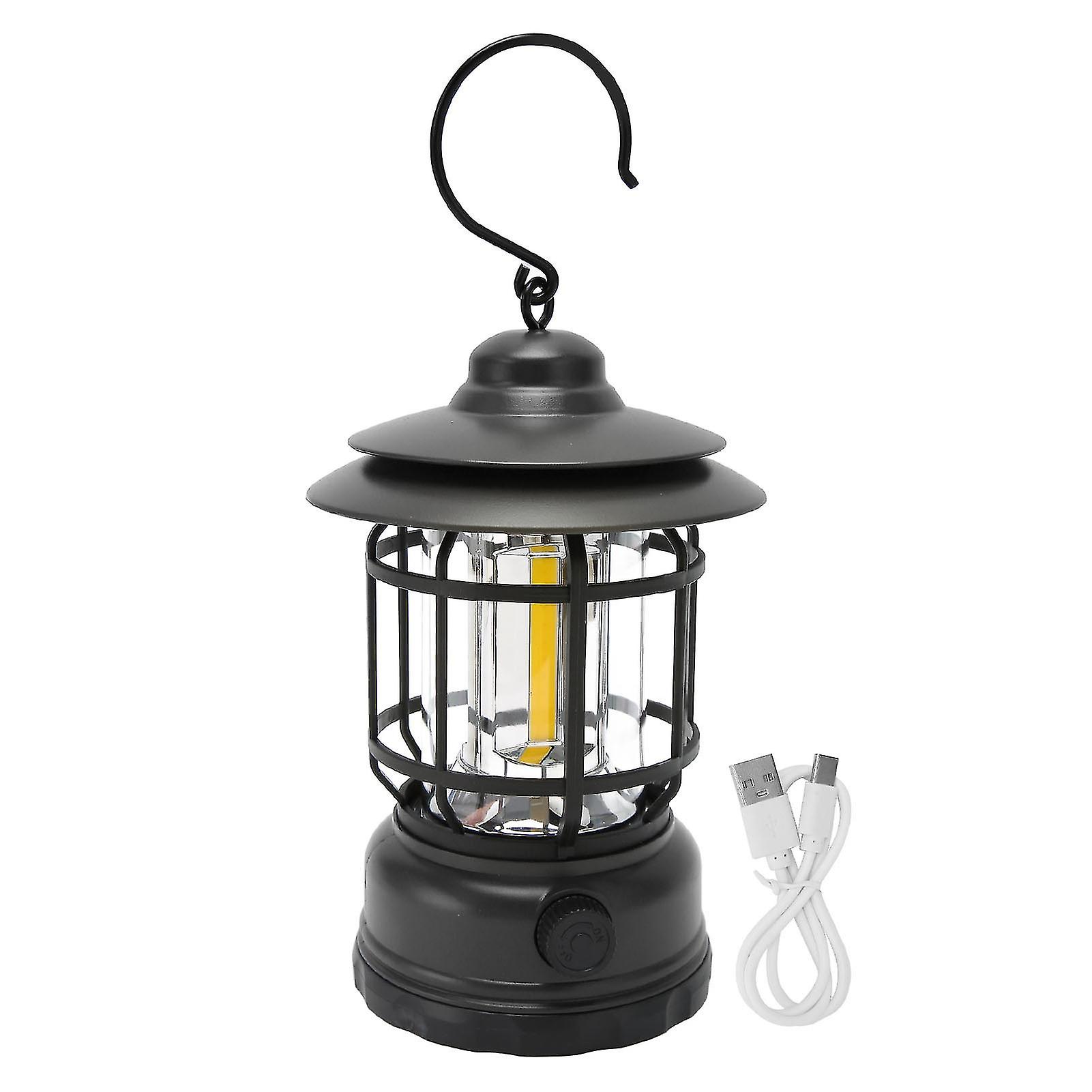Vintage Camping Lantern IPX4 Waterproof Eye Protection USB Rechargeable Decorative Portable COB Tent Lamp with Hook Black