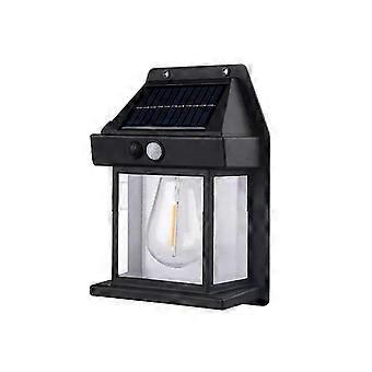 Features1. Adjustable Solar Panel & Large Capacity Battery: The LED solar powered wall lantern is designed with a large-size solar panel and a 1200mAh large capacity rechargeable battery. The rotatable solar panel allows this dusk to dawn solar wall sconce to be adjusted from 0to 90 to get direct sunlight and absorb the sunlight more effectively. The wireless solar security light will self-sustain itself illuminating all through the night after getting direct sunlight for 6 hours to be fully charged. 2. Low-voltage Bulb Included: The solar LED security light is equipped with an energy-saving low-voltage led bulb. This bulb adopts modern led squirrel cage filaments, which enable cordless solar motion sensor light to provide a larger and brighter lighting range. And the plastic material makes the bulb shatterproof, largely reducing your bills of frequent re-lamping.3. Auto ON/OFF Sensor: The solar wireless wall lighting features sensitive dusk to dawn sensor, which enables it to detect the brightness of the surroundings sensitively, automatically turn off at dawn and turn on at dusk. The solar dusk to dawn wall lamp will keep warm cozy lighting for up to 12 hours at night after being fully charged. 4. Weather Resistant: Made of IP65 waterproof rating and durable Plastic material, this solar LED wall sconce light can handle rain, snow or other extreme weather conditions. It means that the motion sensor security light can be exposed outdoors to use for years while remains it stylish looking. 5. Dual Installation Ways & Wide Application: The design of the removable mounting base allows for the black solar wall light to be installed in two ways. You can choose the way you like for mood or ambient lighting. No electrical wiring is required, the outdoor solar porch lighting is a perfect energy-saving and money-saving alternative to electric outdoor lighting. Its suitable for your front door, garage, garden, yard, courtyard, porch, patio, hallway, balcony, corridor, etc. SpecificationMaterial: PC, ABSColor: Black, WhiteSize: 17 x 8 x 11 cmWeight: 260 gSolar panel specification: single crystal silicon 5.5V 1.43WBattery specification: 18650 lithium battery 3.7V 1200MAHOutput power: 3.2V/3WCharging time: 6 hours in sunlightPIR sensing angle: 120 degreesSensing distance: 8-10 metersPackage Include:1x Solar Wall Lantern