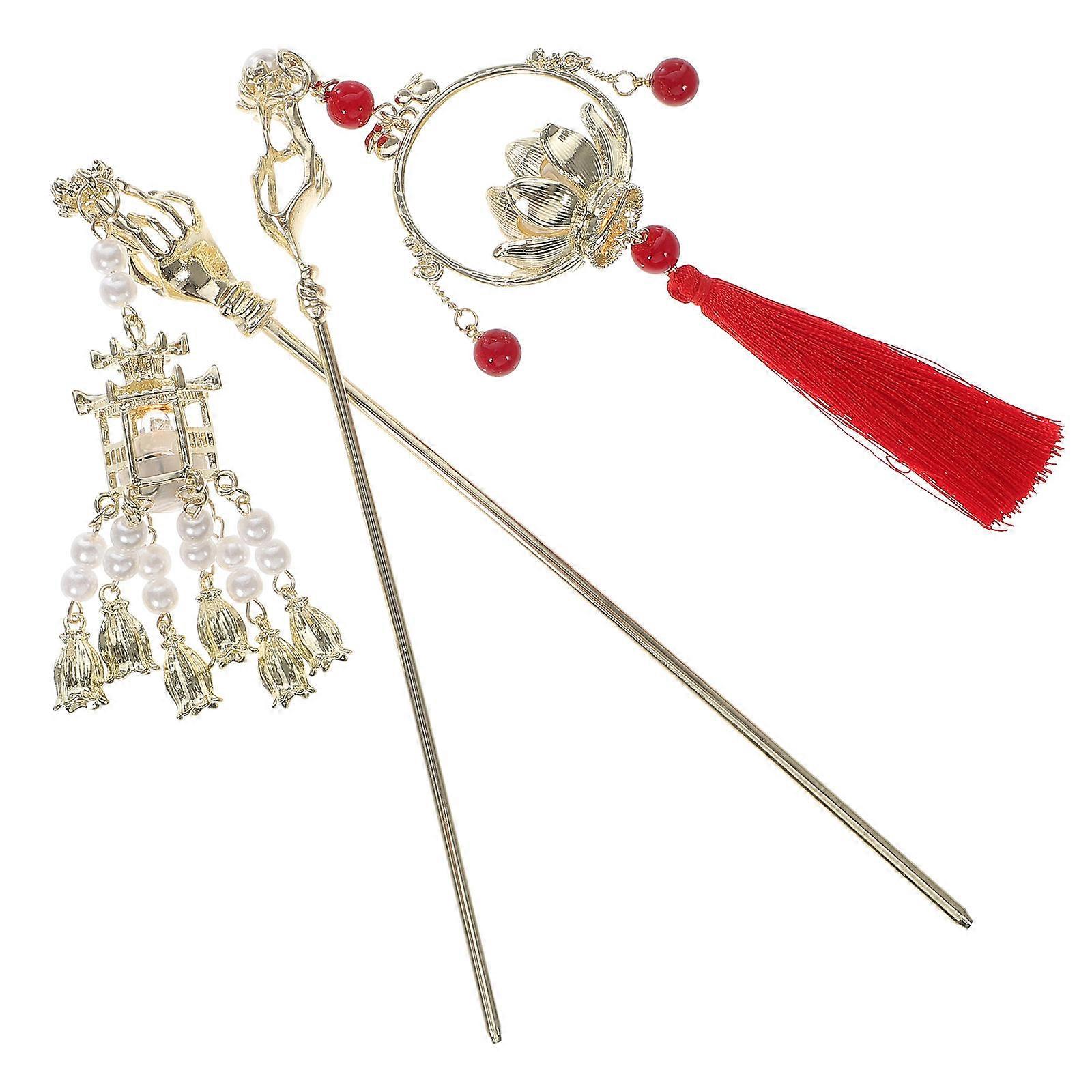 Lantern Hair Stick Chinese Style Accessory For Special Events Vintage Design Alloy Material 2Pcs