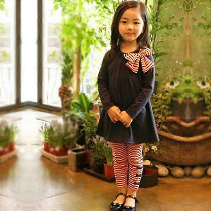 Girl Kids Bow T-shirt Dress Long Top Striped Pants Set Trousers Outfit