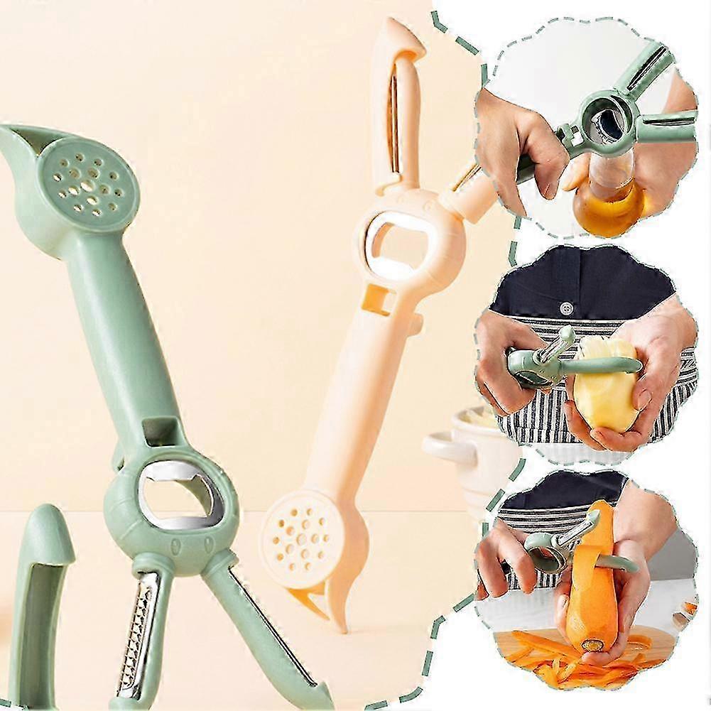 Material: Stainless Steel + PPSize: 24.7 * 9.5cm / 9.63 "* 3.71"Color: Green, Apricot1. Versatile Design: This versatile bottle opener is ingeniously designed to easily open different types of bottle caps, including bottled beer, soda, and canned food, as well as having a peeling function, making it highly versatile.2. Lightweight and Portable: The compact and lightweight bottle opener is easy to carry. It can be hung on a keychain or bag, making it convenient to use anytime, anywhere.3. Efficient : High-quality stainless steel and plastic materials are used to ensure that the bottle opener is sturdy , with a long service life, and can ensure a quick and efficient bottle opening process.4. Safe and Reliable: The user-friendly design ensures that it does not hurt fingers or palms during use, and the bottle cap or mouth is not damaged during the opening process, perfectly preserving the fresh taste of the drink.5. Multiple Applications: Suitable for various occasions including household, birthday parties, camping activities, as well as commercial places such as hotels, restaurants, and bars, making it highly practical.Package Includes: Multifunctional Bottle Opener * 1