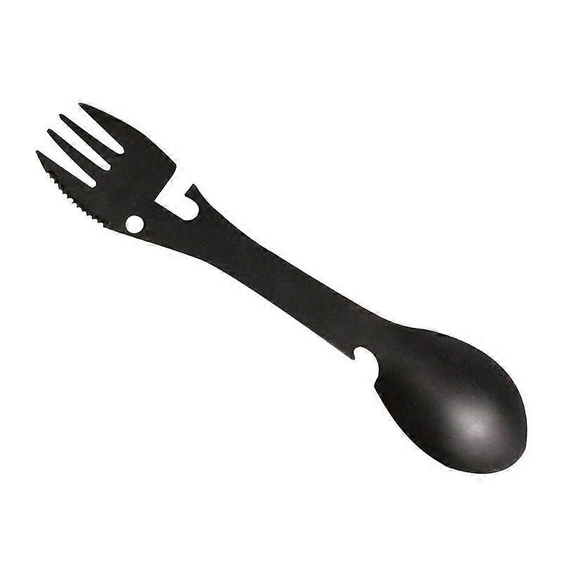 Camping Spork Opener,Functional Stainless Steel Creative Multipurpose Metal Tableware for Outdoor Camping Hiking, Fishing (2pcs, black)