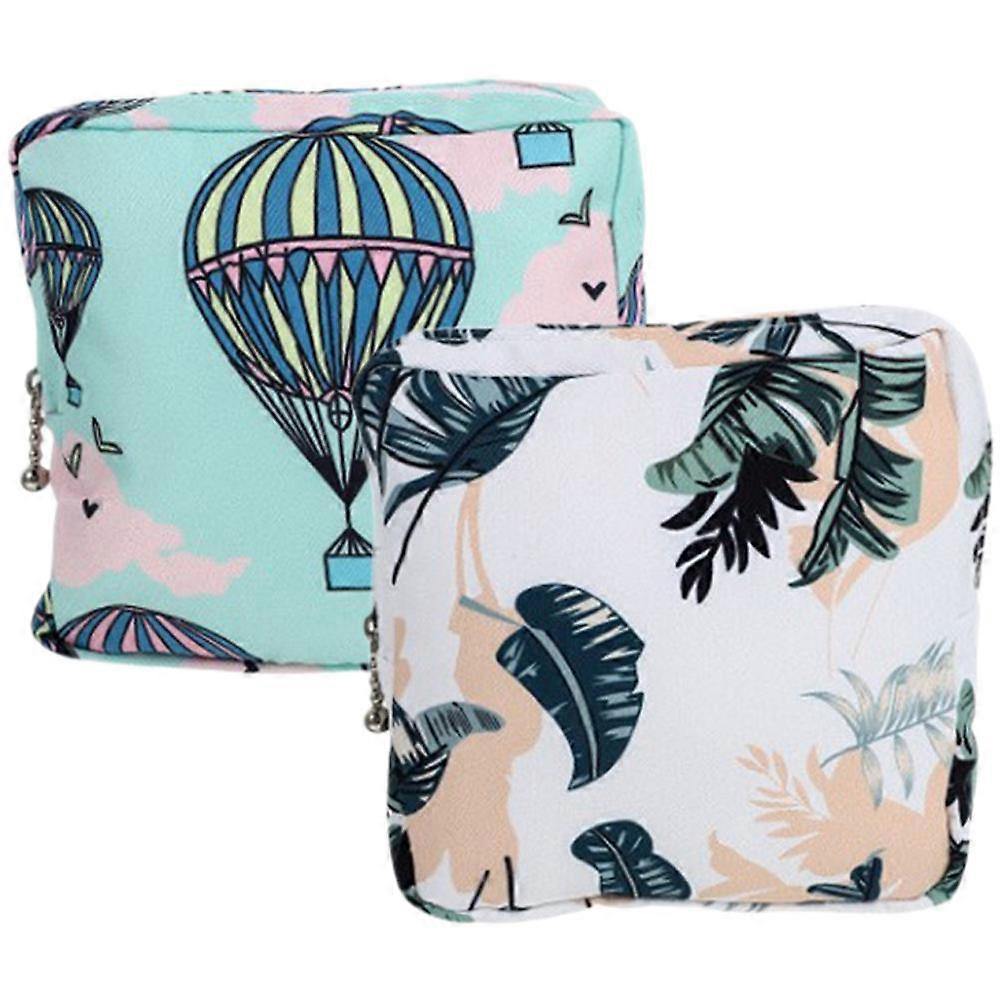 Period Pad Pouch Hygiene Maintenance Rectangular White Leaf Portable Storage Travel Hotel Women 2Pcs