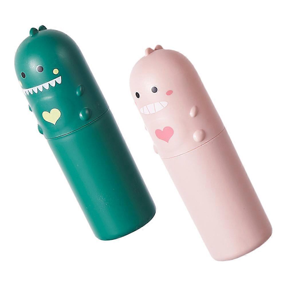 Travel Toothbrush Travel Use Dinosaur Shape Pink 20X6.5CM Portable Storage 2Pcs