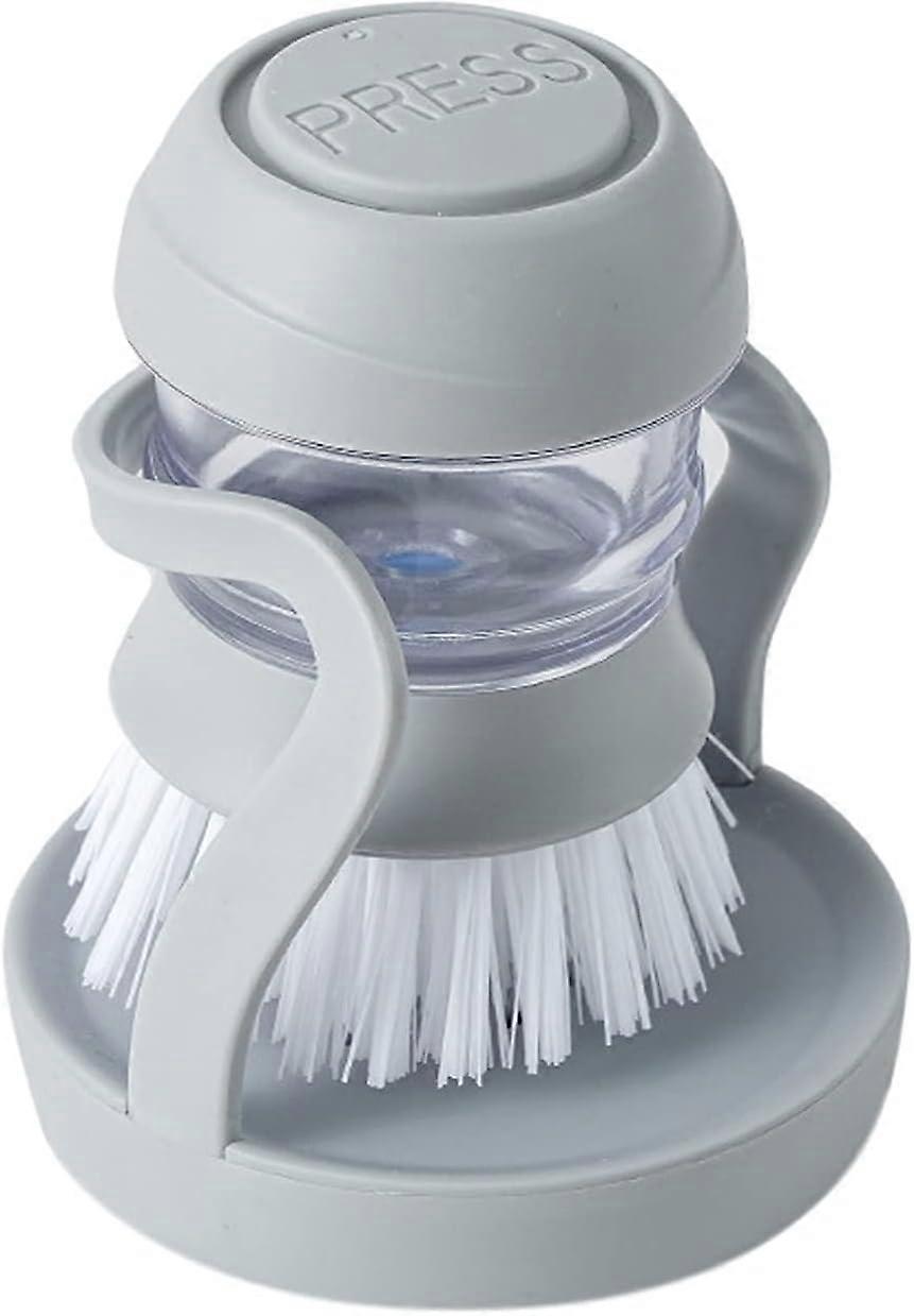 Grey Dishwashing Brush with Detergent Dispenser Holder - Kitchen Pot and Pan Cleaner