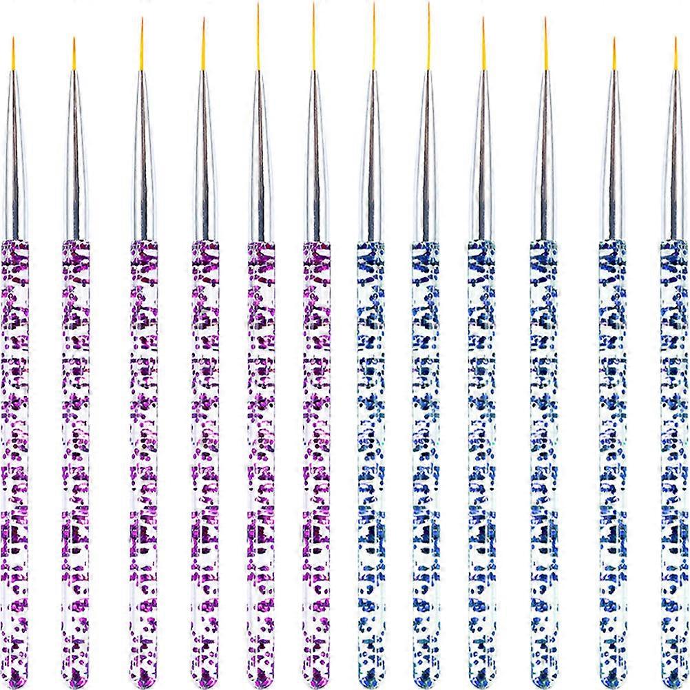 Nail Art Striping Brushes for Manicure with Assorted Colors Fiber Metal Plastic 12 pcs