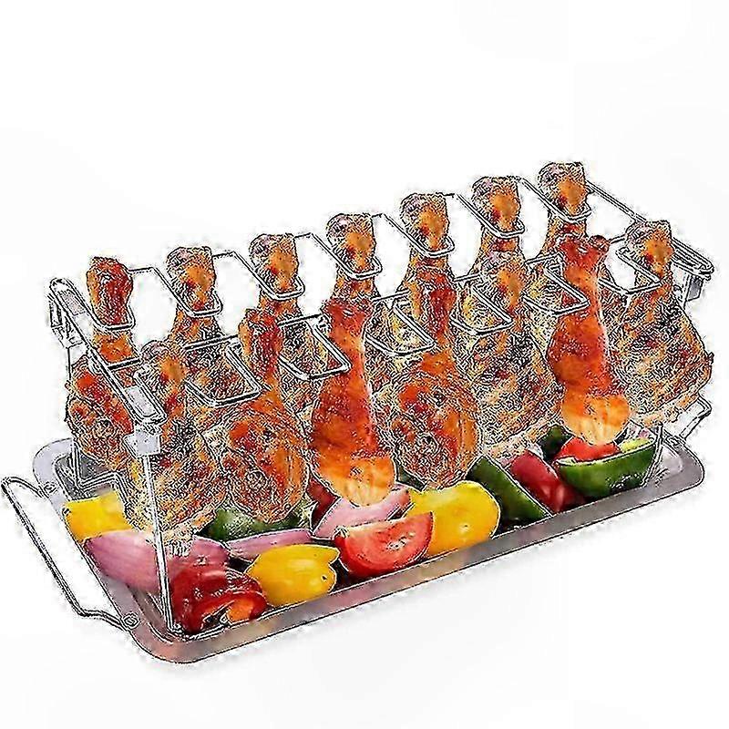 Stainless Steel Oven and Grill Rack with Drip Tray for 14 Chicken Legs or Wings