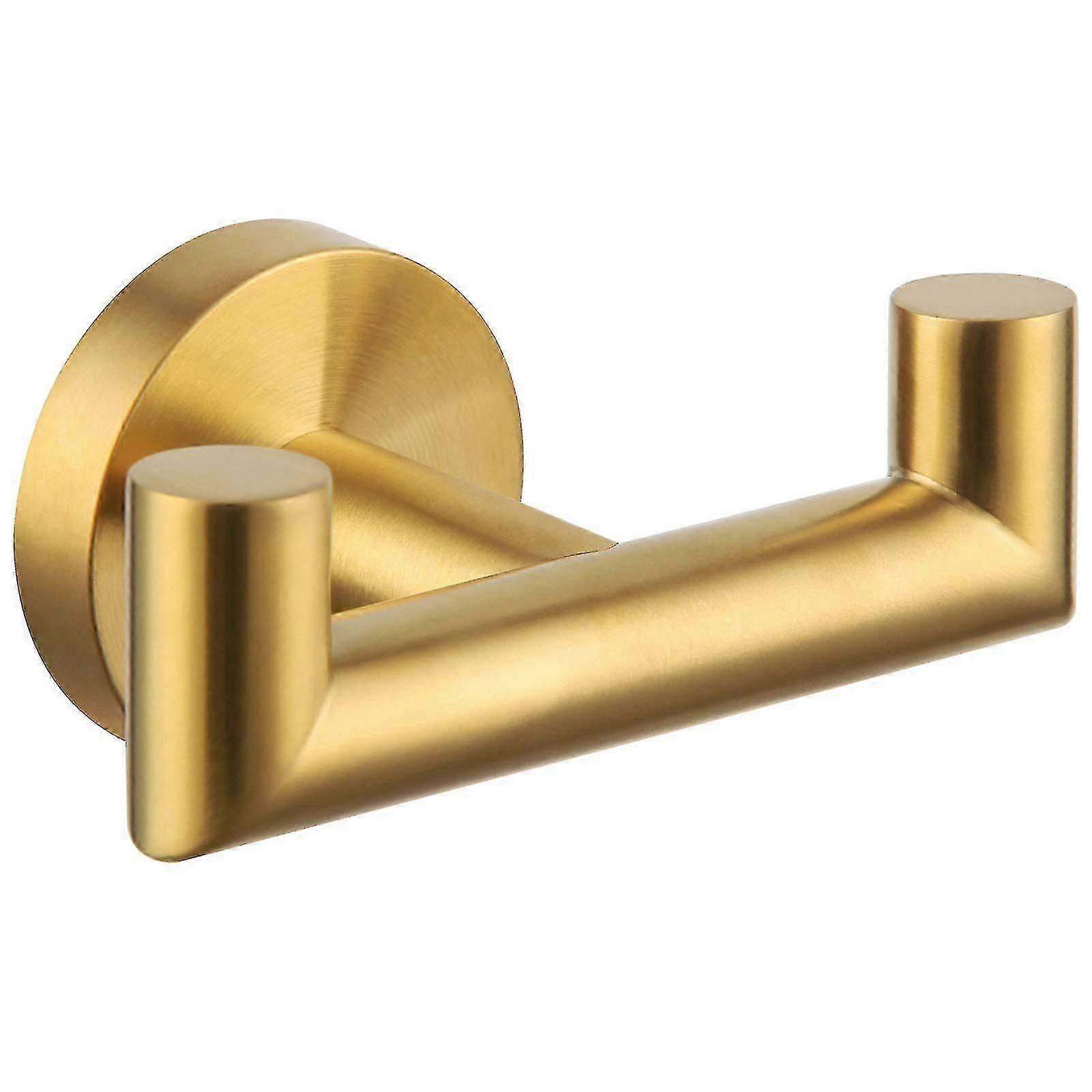 unique Simple Bathroom Double Hook Brushed Gold, Sus304 Stainless Steel Bath Towel Holder, Double Robe Hanger Wall Mount