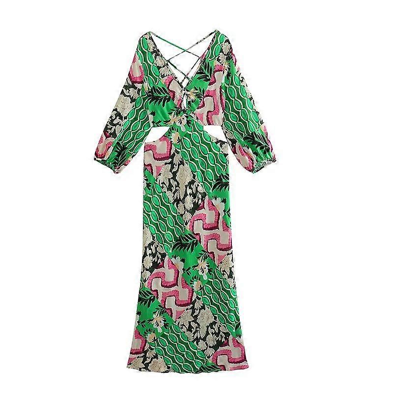 Dress Summer Women's 2023 New Fashion Slim Hollow Elegant Holiday Dress Chic Street Casual Straight V-neck Youth Print Dress