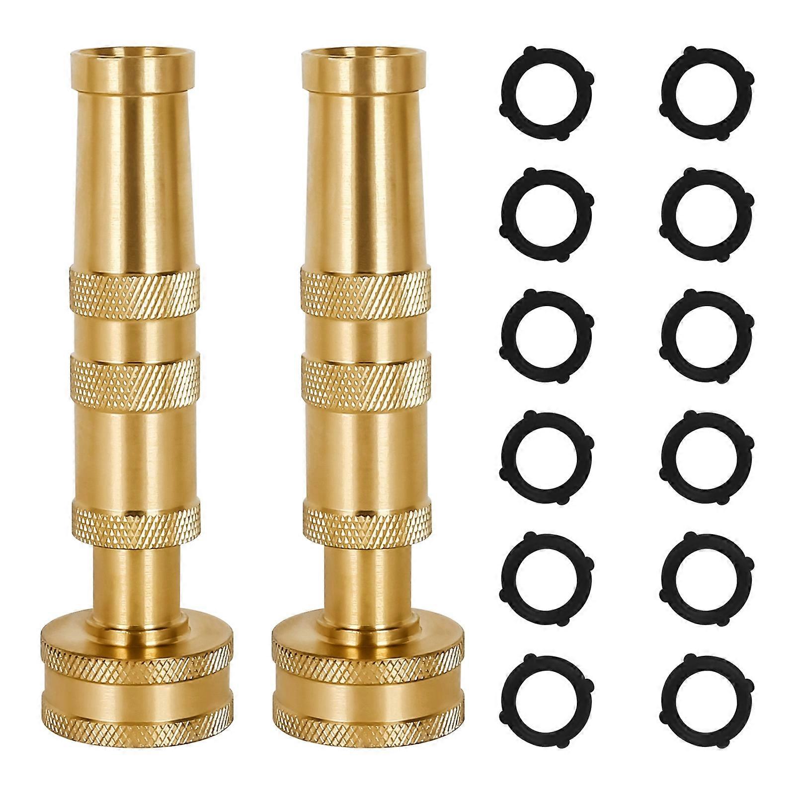 Heavy Duty Brass Hose Nozzle, 4-Inch Adjustable with 12 Garden Hose Rubber Washers, 2 Pack