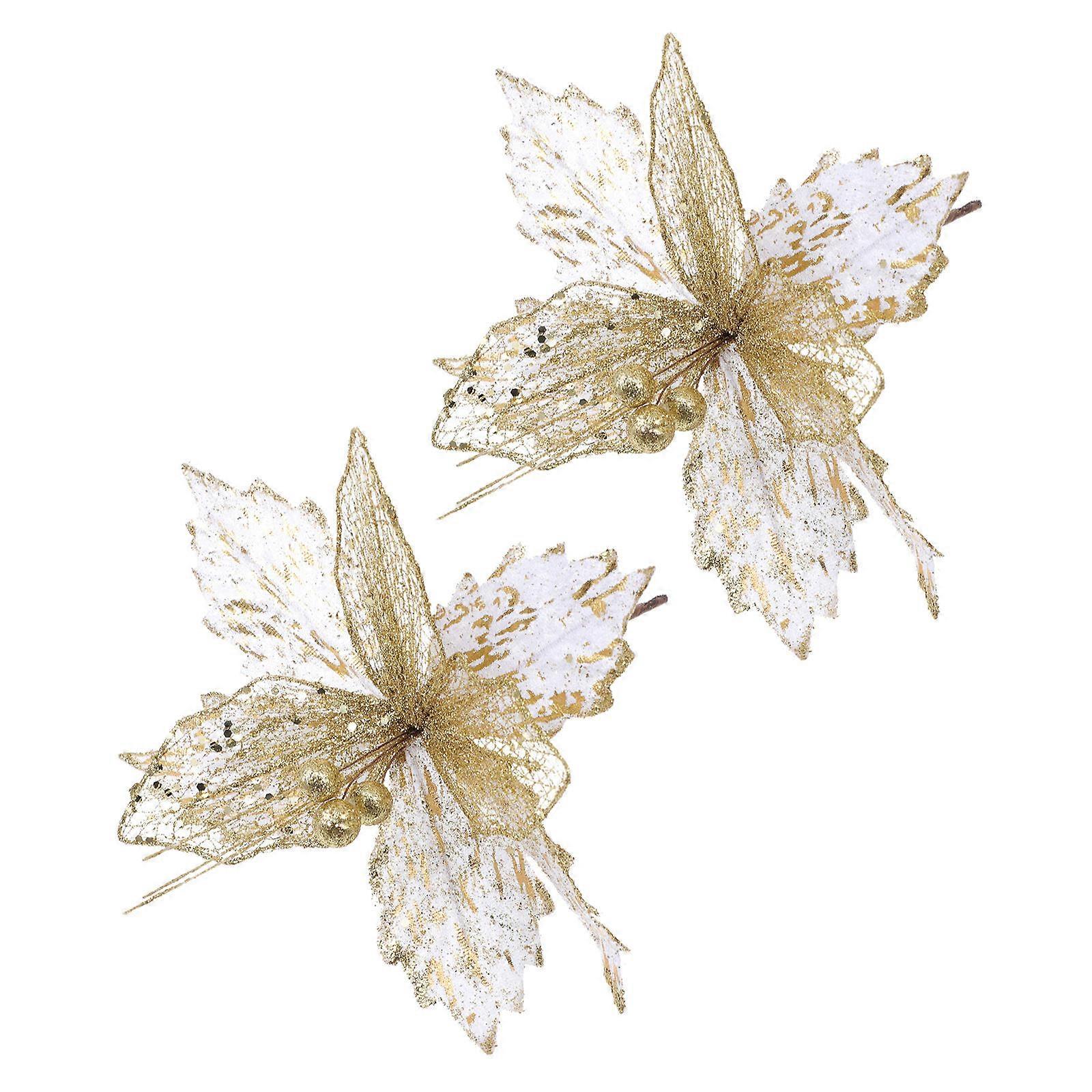 Faux Floral Stems Golden Iron Wire Cloth Christmas Celebration Winter Season 2Pcs