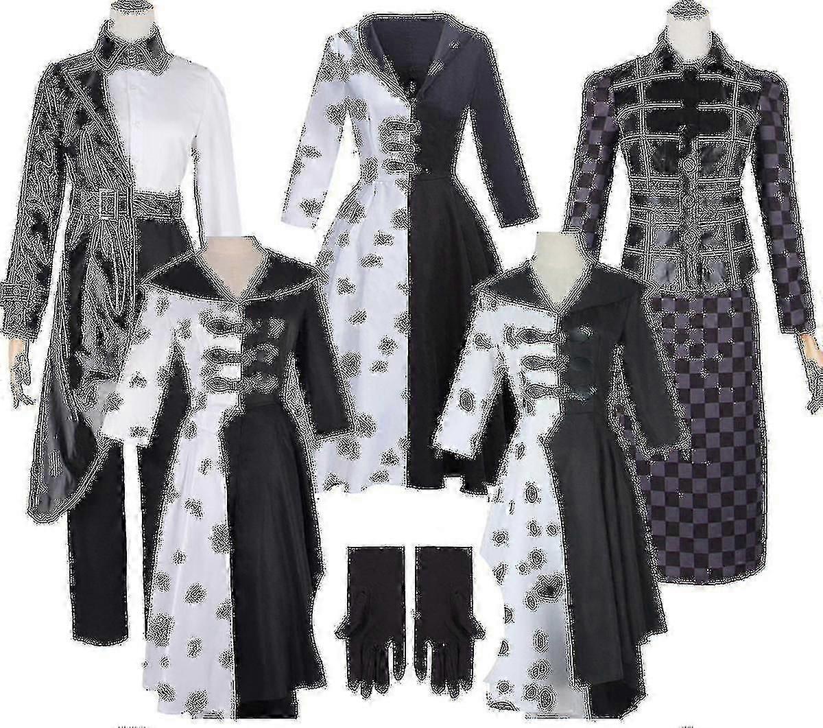 Movie 101 Dalmatians Black And White Witch Kuira Deville Dress Gloves Shawl Halloween Cosplay Costume Set For Women_mi