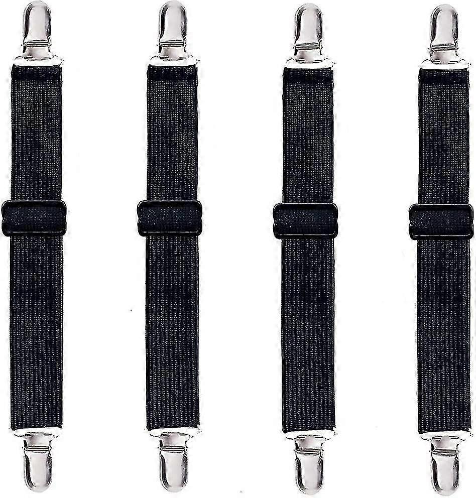 Adjustable Bed Sheet Fasteners Suspenders,fitted Sheet Clips Sheet Garters Sheet Grippers With Elastic Holder Straps(4pcs, Black) -Z