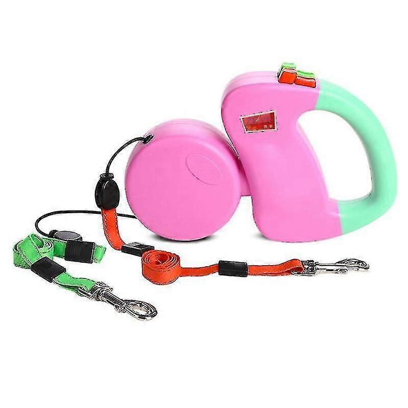 Retractable Dog Leash Double-head Lockable Extendable Pet Leash 360 Tangle-free For Two Dogs Walking Training Pink