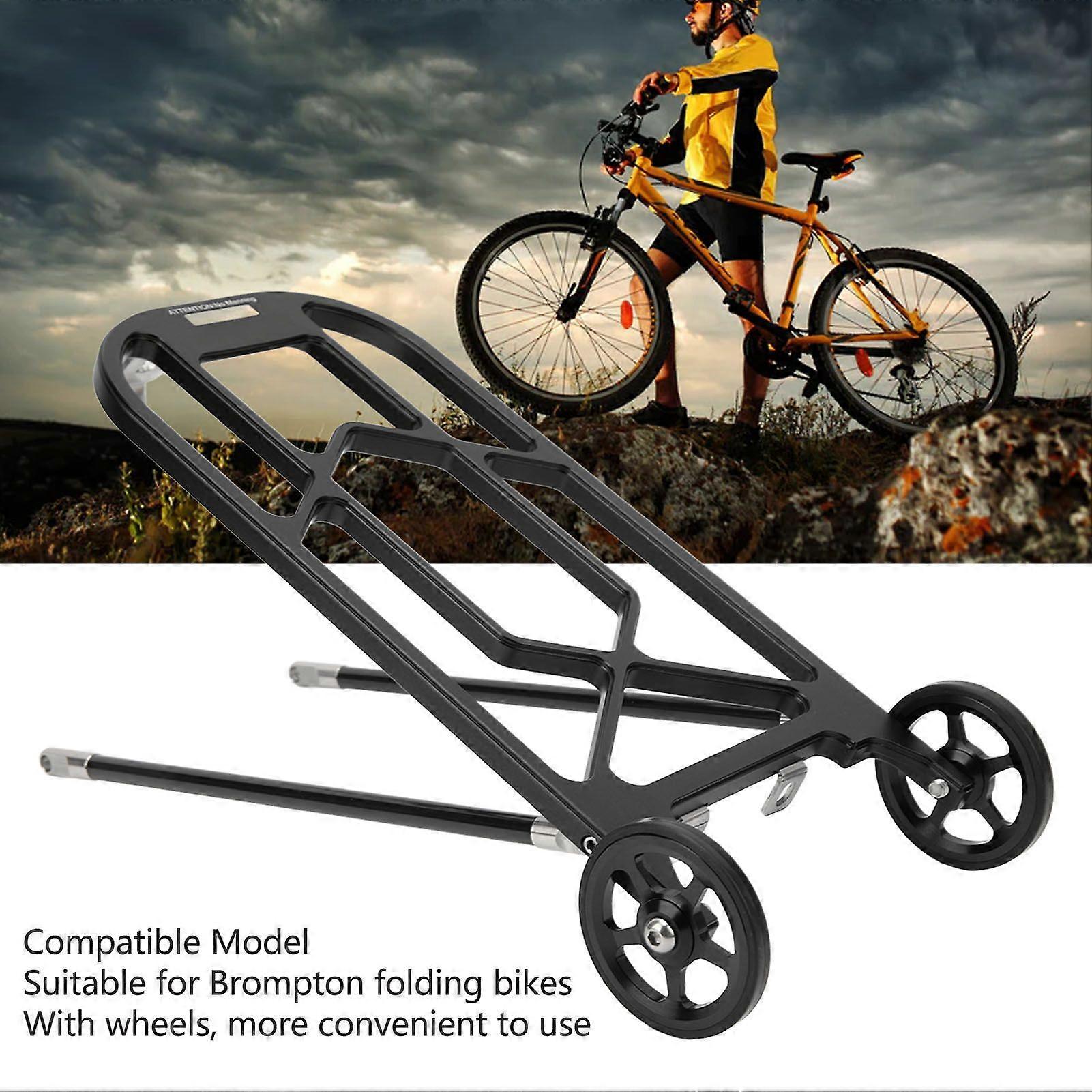 Folding Bike Rear Rack High Strength Aluminum Alloy Bicycle Luggage Carrier with Wheels for Brompton Black