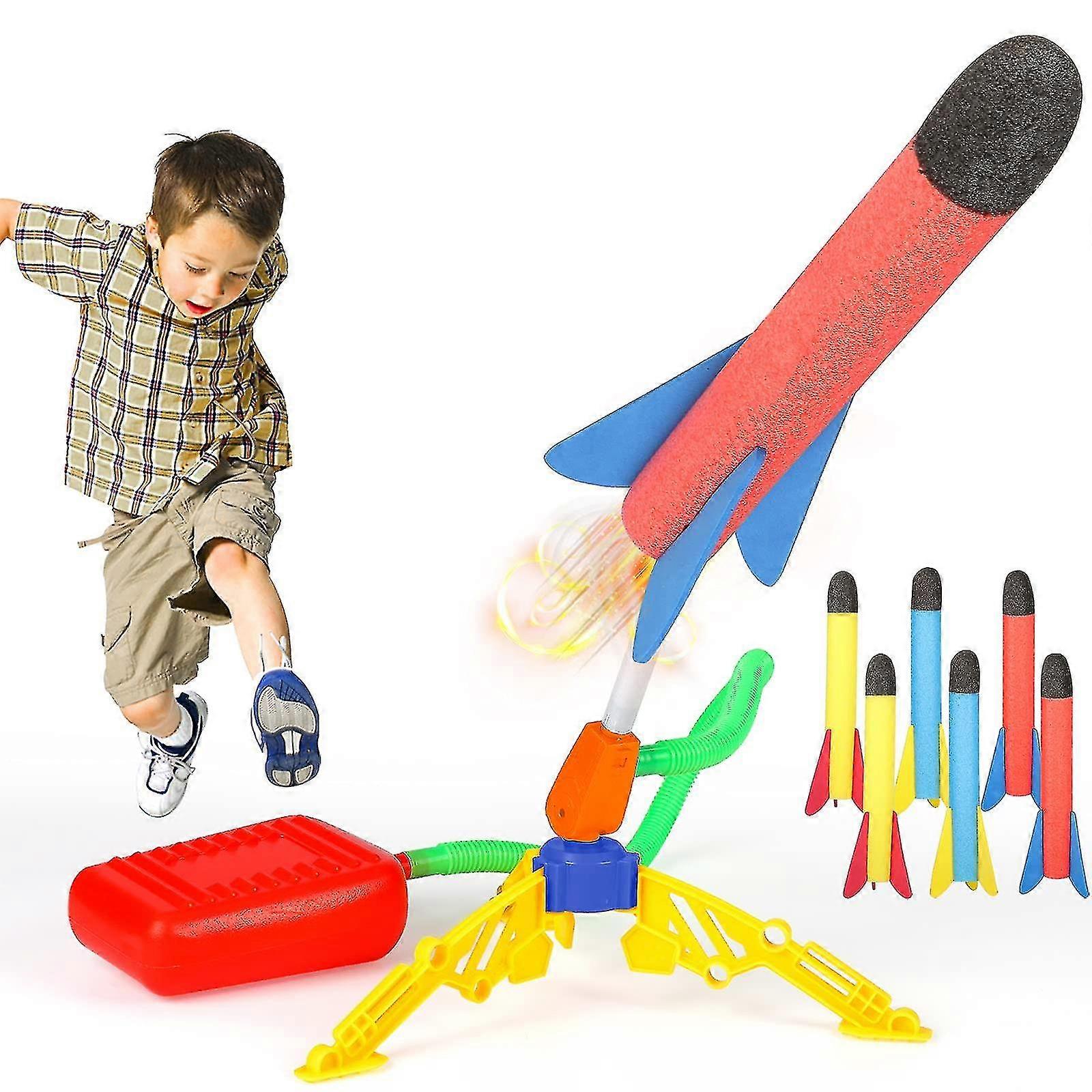 About this itemFunny rocket toys--Rotatable launcher, the transmitter can be adjusted to shoot sideways or directly upwards. Run, jump and step on the air pump to launch foam rockets into the sky in any direction. Suitable for children over 3 years old.High-quality rocket toys set--Crafted with kids-safe plastic, durable design can withstand endless jumping, stepping and playing time The set includes 6 foam rockets, launcher, air pumps and air hoses.Cool indoor and outdoor toys--Keep children away from screen time and sofas, can play in your home, garden, courtyard, lawn, park or even beach: Let children learn stem subjects in toys.Easy assembly&Convenient storage--This rocket launcher toys is easy and fast to assemble and 100% child-powered and does not require batteries, the bracket is easy to remove and store, convenient to store in small space and travel, and easy to carry out.Enjoy entertainment&best gift--It is fun, educational of toys, very suitable for year-round entertainment, the best gift for birthday, christmas party, suitable for boys and girls 5 years old and above.