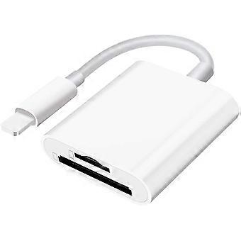قارئ بطاقة SD لكاميرا iPhone iPad ، قارئ بطاقة ذاكرة فتحة بطاقة مزدوجة يدعم SD