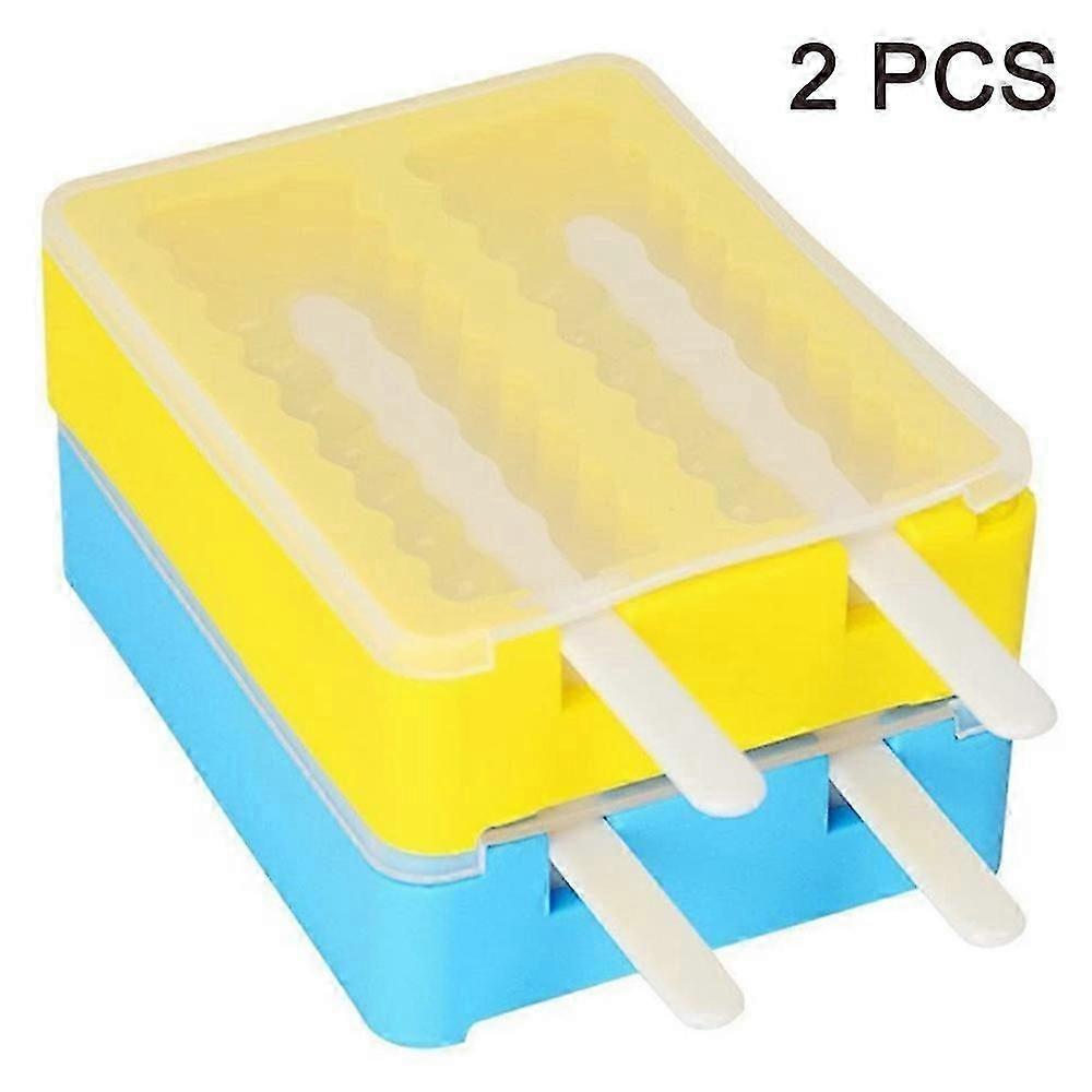 Silicone ice cream mold creative DIY popsicle mold stick molds with lid made of food-safe silicone set of 2 yellow + blue