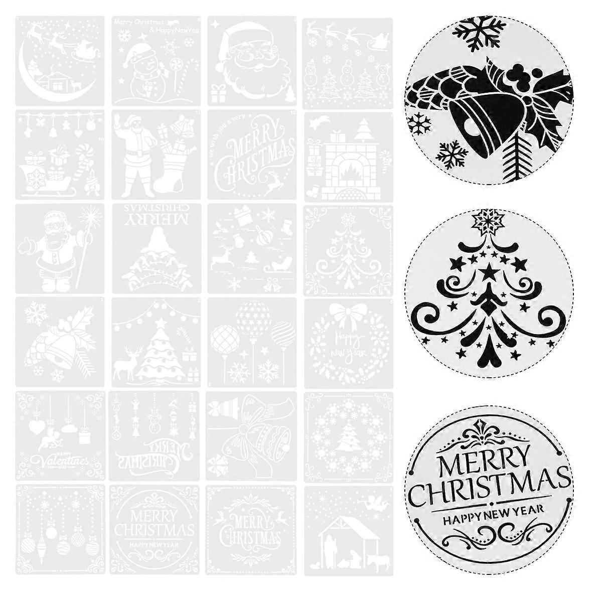 Hollow Design Stencils Template for Christmas Craft Activities Assorted Color 13X13X0.1CM 24Pcs