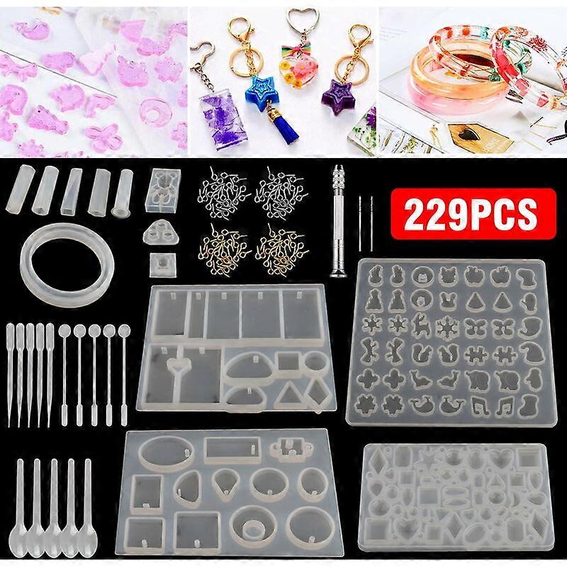 Silicone Resin Mold for Jewelry Casting, 229 Pieces Silicone Casting Molds and Tools, DIY Crystal Pendant Epoxy Resin Making Kit for Resin Casting Beg