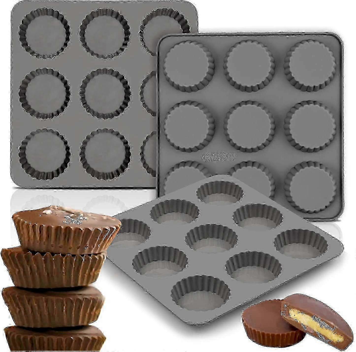 Chocolate Almond Peanut Butter Cup Mould-(3pcs) 9 Cup Bomb Snack Tray/mini Silicone Biscuit Candy Mould, Brownie, Jelly, Truffle -dd